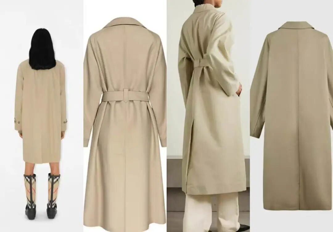 总而言之,各个品牌都绞尽脑汁地让风衣后面的这块布料看起来更有设计感。